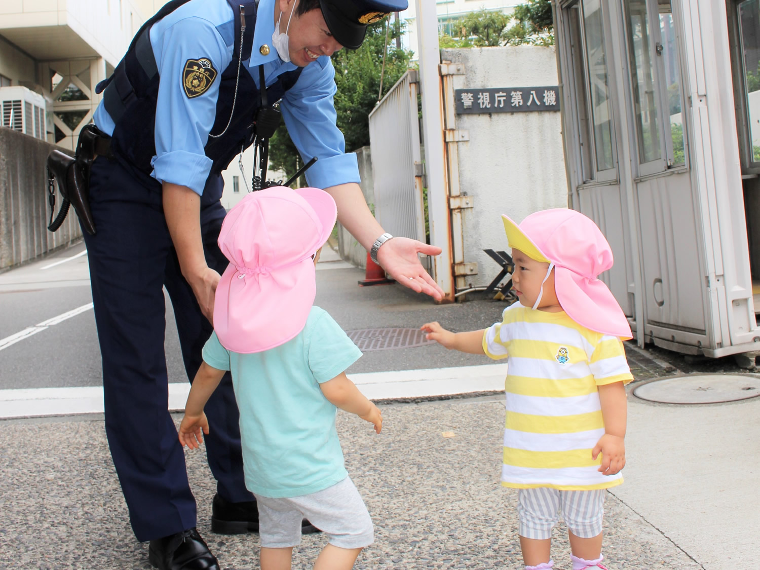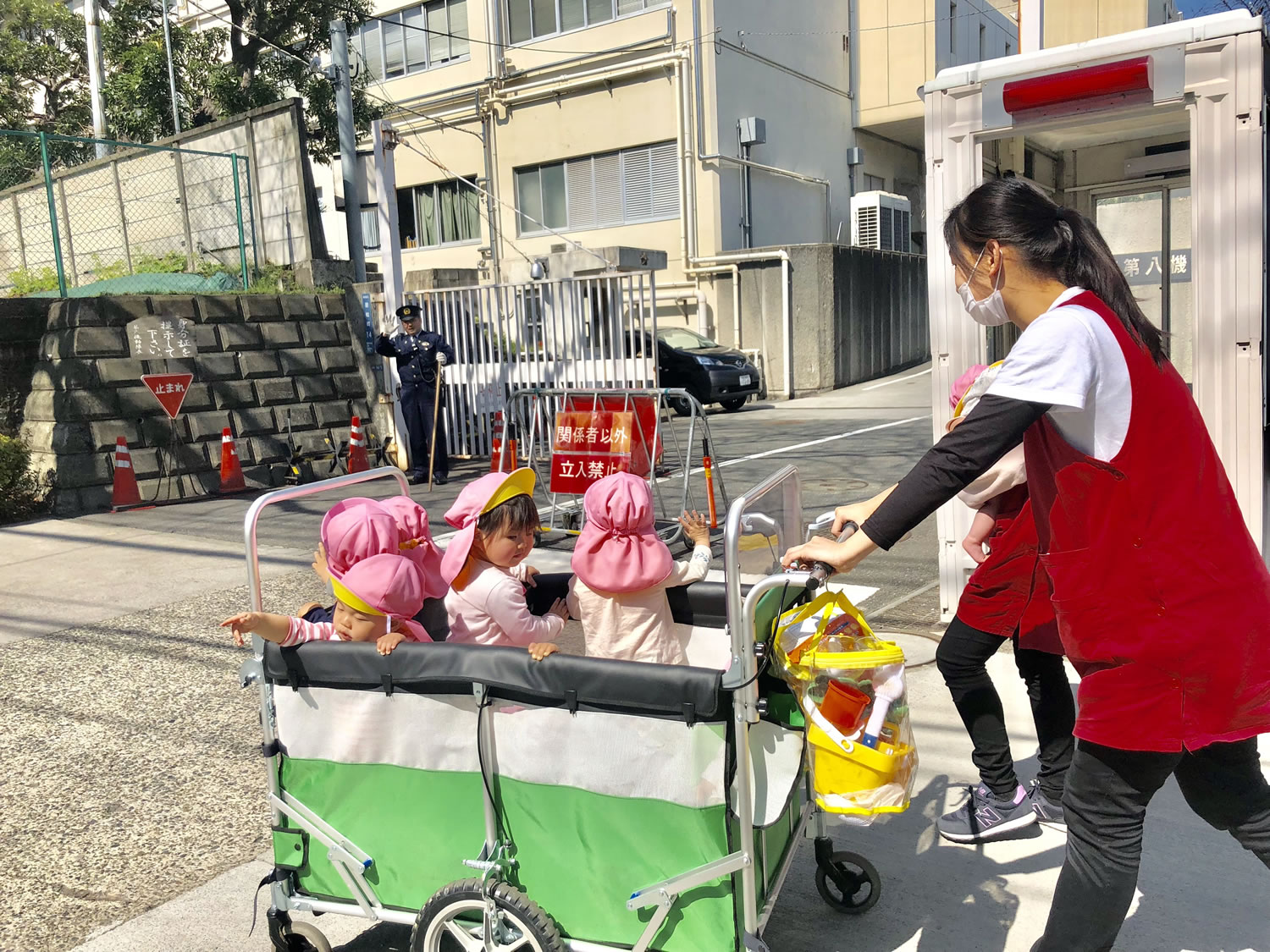 近くには当園以外の保育園や小学校、スーパーなど子連れの方も多く行き交う場所にZERO Nurseryがあります。お散歩時には町内の方や警視庁警備の方に元気いっぱいに”バイバイ”と挨拶をする習慣もあるなど近所での交流も多く都心ではありますが、下町のような雰囲気のある温かい町です。神社も多くある場所なので、一般的なお祭りからこども祭りなどお子様向けの町内イベントも行われています(^^)