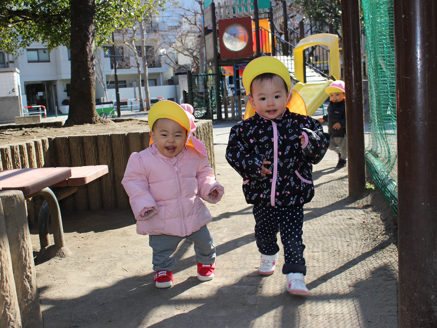 富久さくら公園、余丁町児童遊園、抜弁天北公園、わかまつ児童遊園などお天気の良い日にお散歩へ行き、おもいっきり走ったり砂場遊びや滑り台などの遊具で遊べる環境があります。